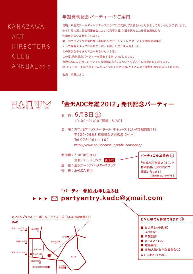 金沢ADC年鑑2012発刊記念パーティーのご案内
